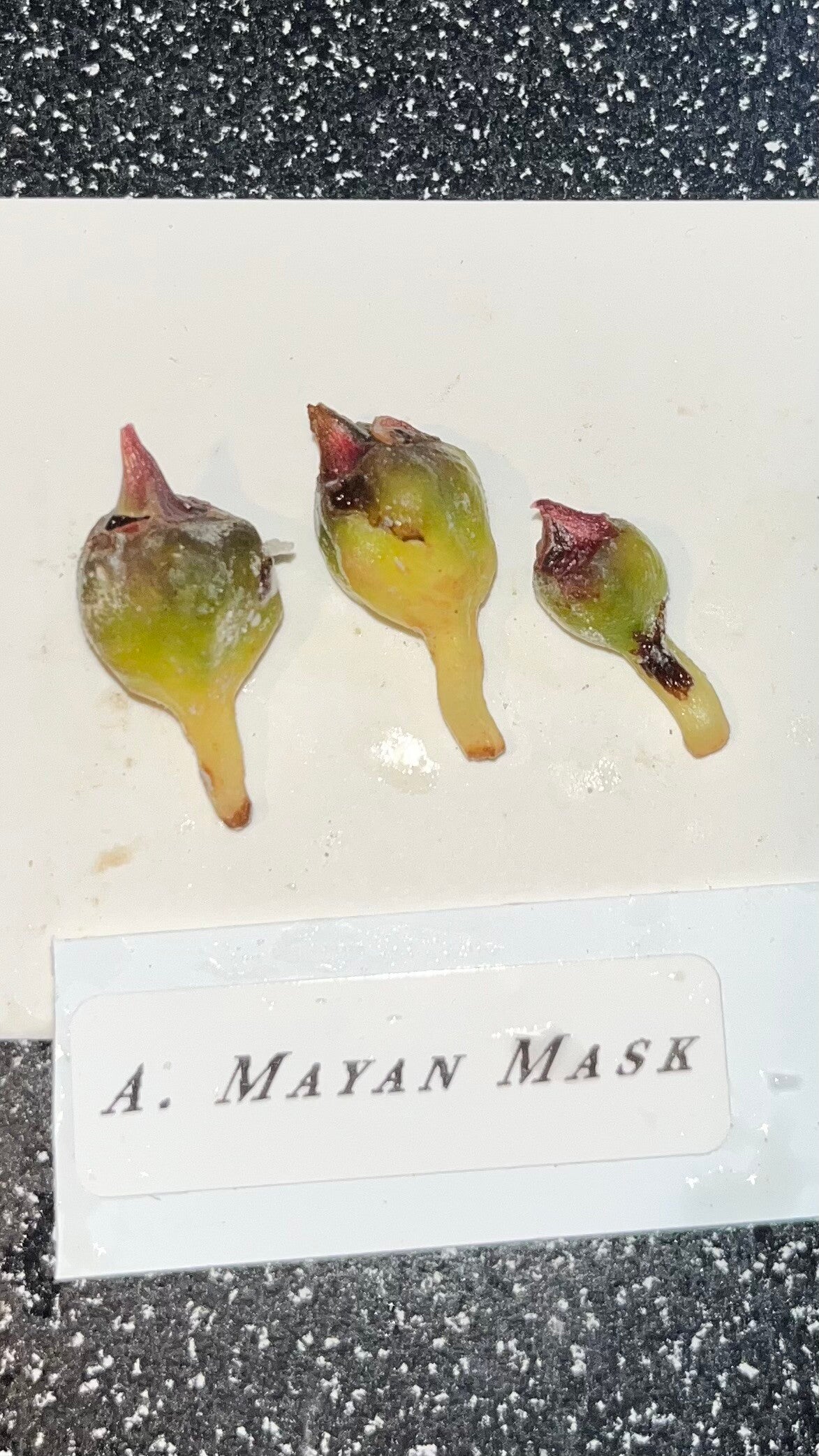 Navnet “Mayan Mask” kommer av den dramatiske bladformen og strukturen, som kan minne om utskårne masker fra mayakulturen.