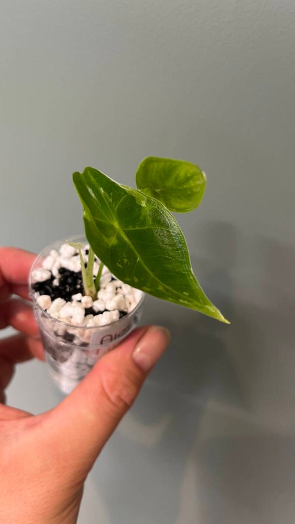 Alocasia Longiloba Albo er en sjelden varigert variant av Alocasia Longiloba, en art hjemmehørende i sørøst-Asia. Den kjennetegnes av sine lange, pilformede blader med en dyp midtribbe, sølvaktig årenett og en karakteristisk blågrønn fargetone på de grønne partiene. Variegasjonen varierer fra kremhvit til limegrønn og er ofte asymmetrisk, noe som gjør hvert blad helt unikt.